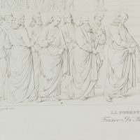 Filippo Cartoni (19th century) after Pietro Perugino (1445 Citt’a della Pieve/Perugia – 1523 Fontignano/Perugia), Jesus hands the keys to Peter, copperplate engraving after Pietro Perugino, drawn by Filippo Bigioli, c. 1835, Copper engraving