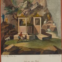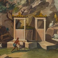 Francesco Cepparuli (before 1750 – after 1767 ) after Giovanni Elia Morghen (1717 Florence – after 1790 ), Shepherds in a rocky landscape with architectural elements After Pompeian frescoes, 18th century, Copper engraving