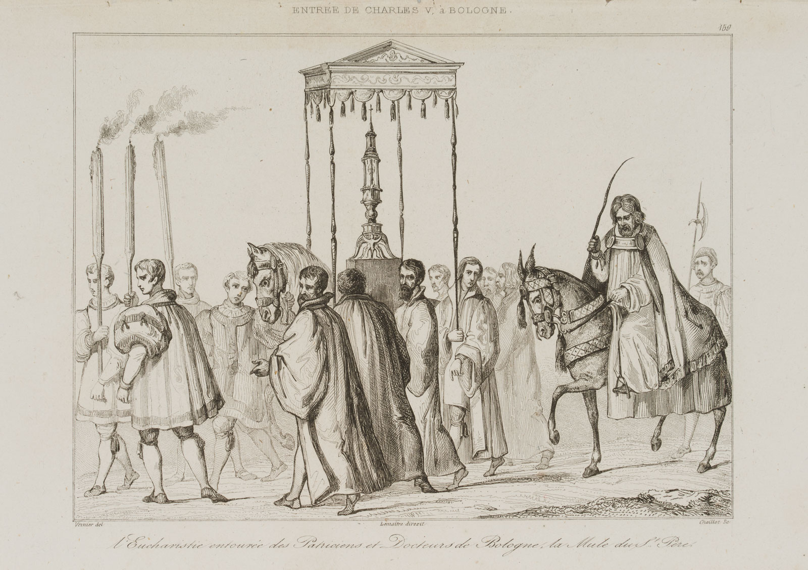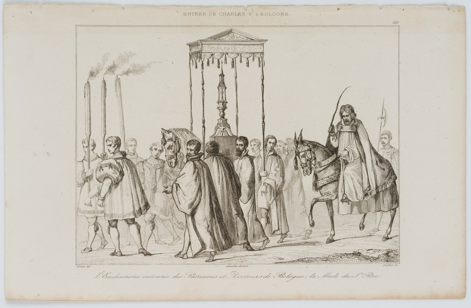 Chaillot (19th century) after Vernier (19th century), Solemn Entry of Charles V into Bologna, “Entrée de Charles V a Bologne, 19th century, Copper engraving