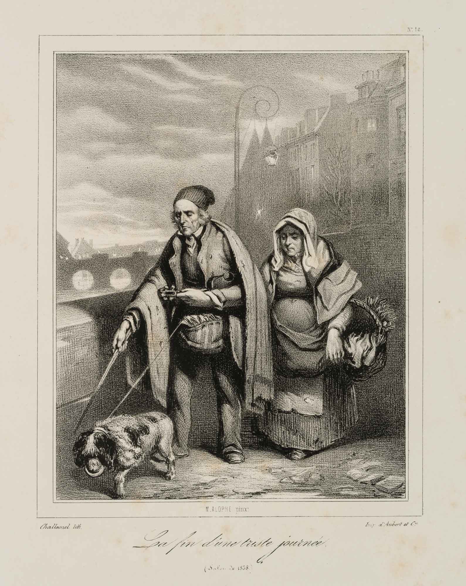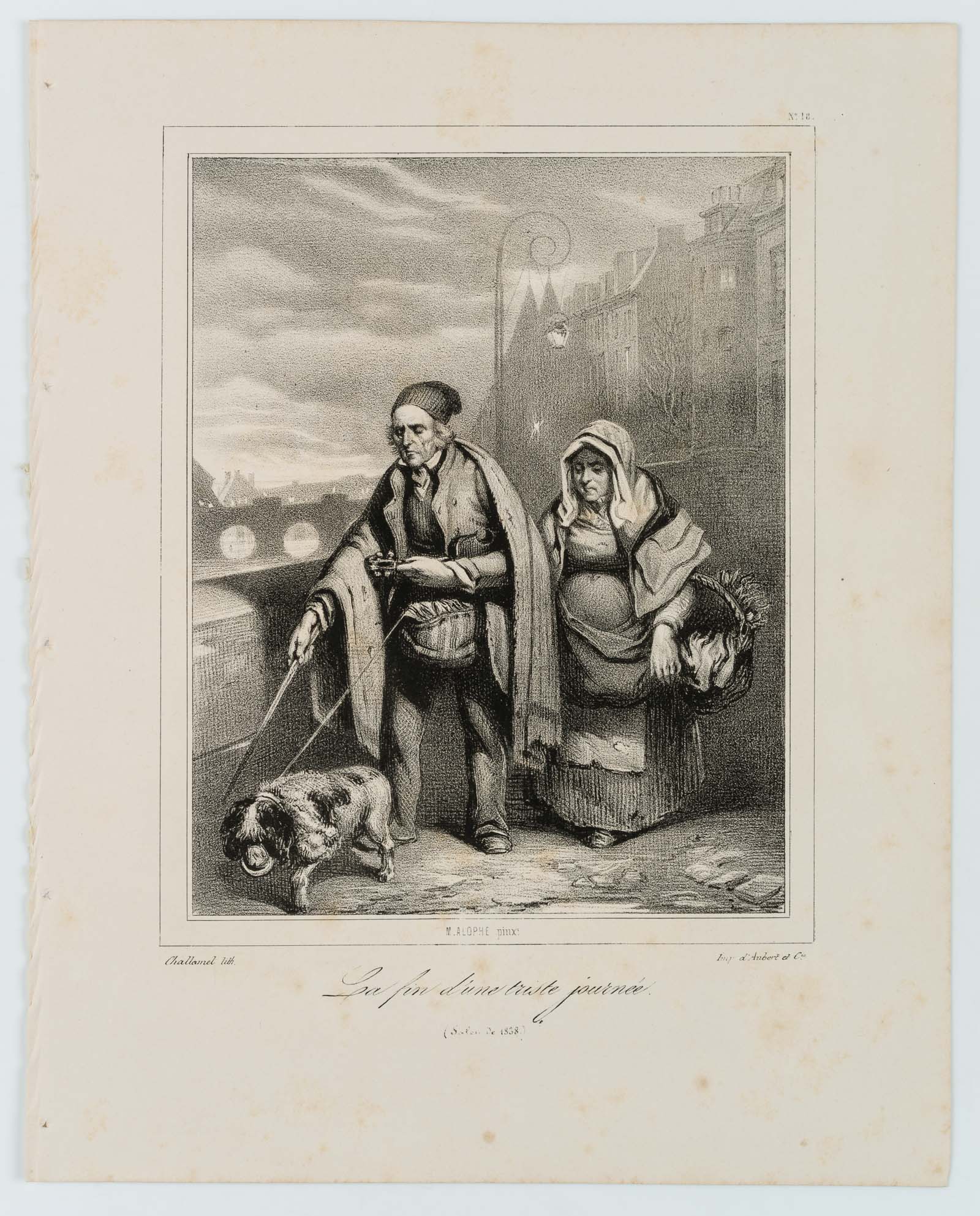 Jules Robert Challamel (born 1813 Paris) after Marie Alexandre Alophe (1812 Paris – 1883 ibid.), The end of a sad day, c. 1838, Lithography
