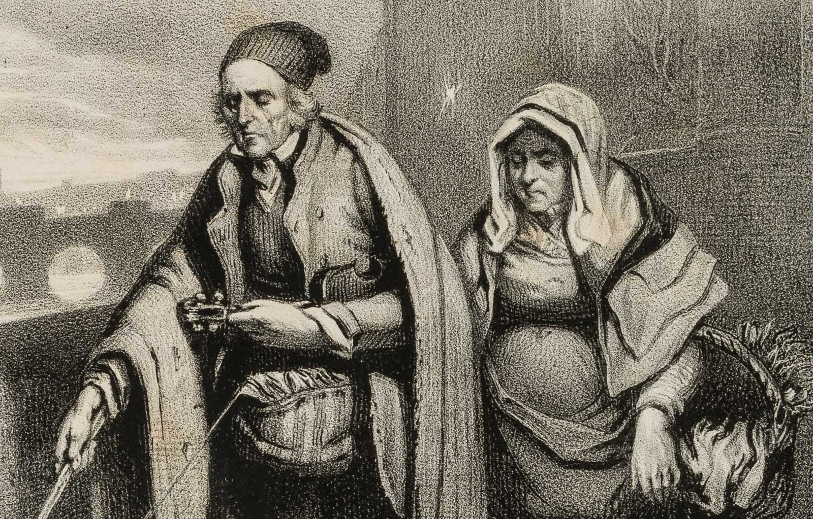 Jules Robert Challamel (*1813 Paris) nach Marie Alexandre Alophe (1812 Paris – 1883 ebd.), La fin d’une triste journée, um 1838, Lithographie