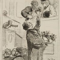 Cham: Amédée Charles Henry de Noé (1819 Paris – 1879 ibid.), Cartoon MP sells flowers, , Lithography
