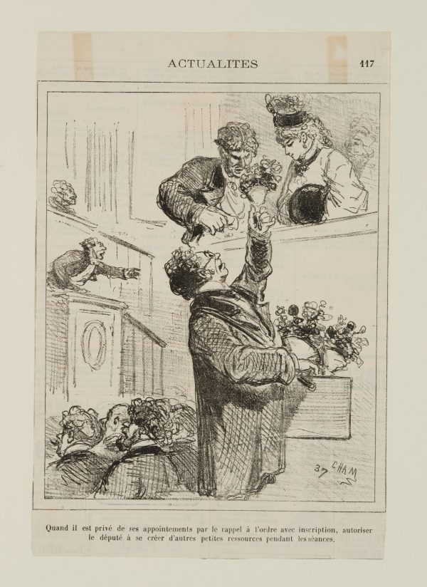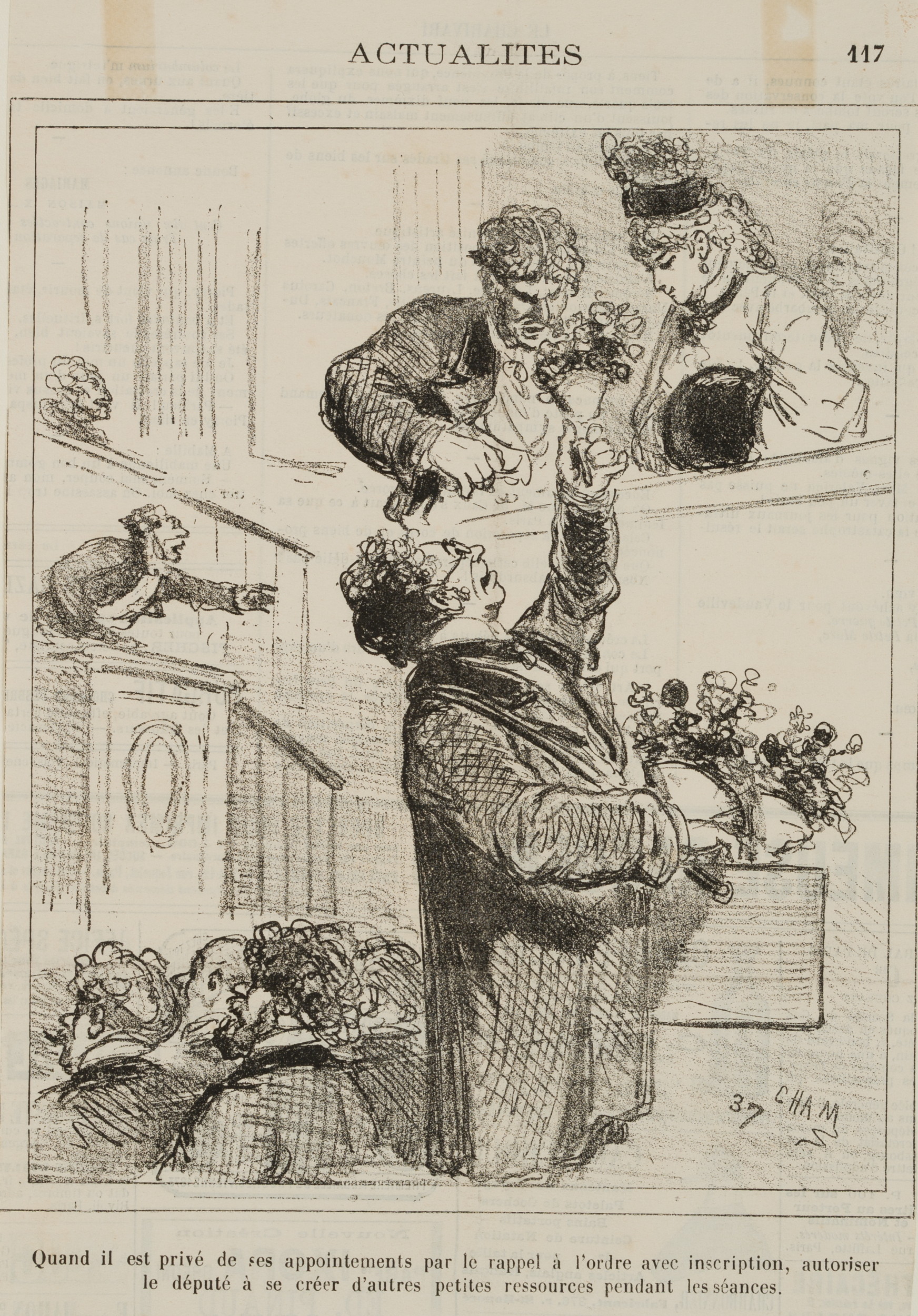 MP, Parliament, Flowers, 19th century, Modern, Caricature, France, - Size: 19,5 cm x 28,5 cm (7,7 x 11,2 in)