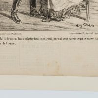 • Beschreibung: Bildunterschrift. Aus dem Französischen übersetzt: “Der König von Preußen ist darauf bedacht, jeden Abend eine Zeitung zu kaufen, um zu erfahren, was auf den Wiener Kongress passiert.”