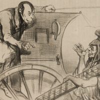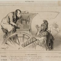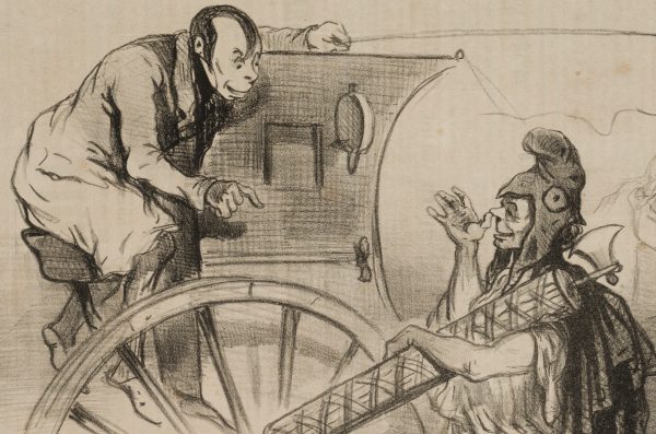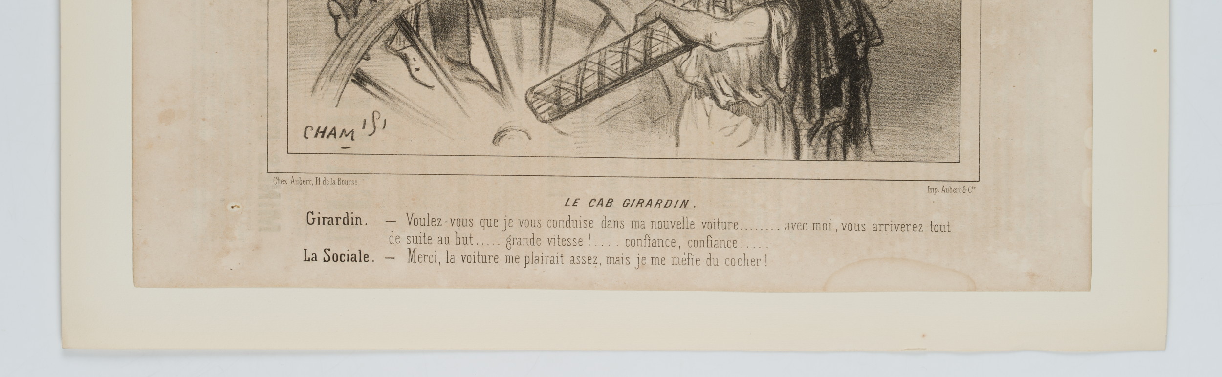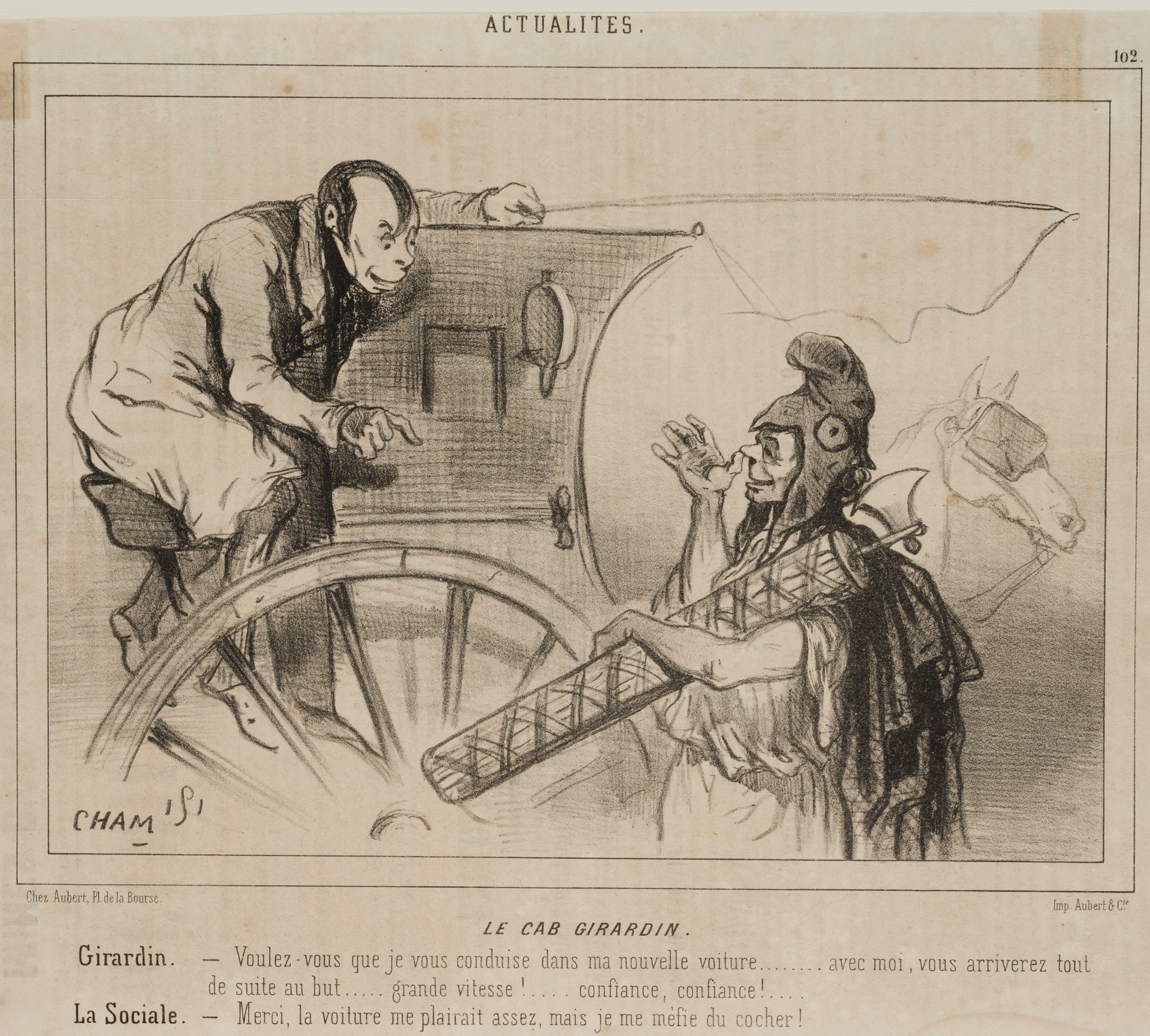 Cham: Amédée Charles Henry de Noé (1819 Paris – 1879 ibid.), Caricature Le Cab Girardin – Conversation Coachman & Passenger, , Lithography