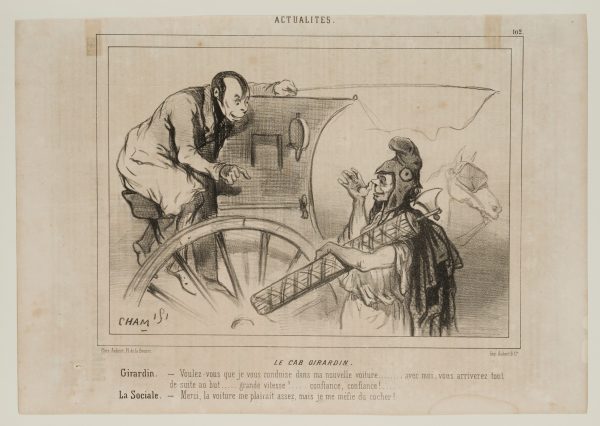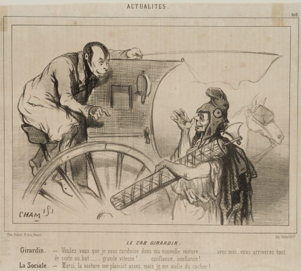 “Girardin – Would you like me to drive you around in my new carriage …. with me you will reach your destination immediately…. high speed: trust, trust!….