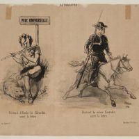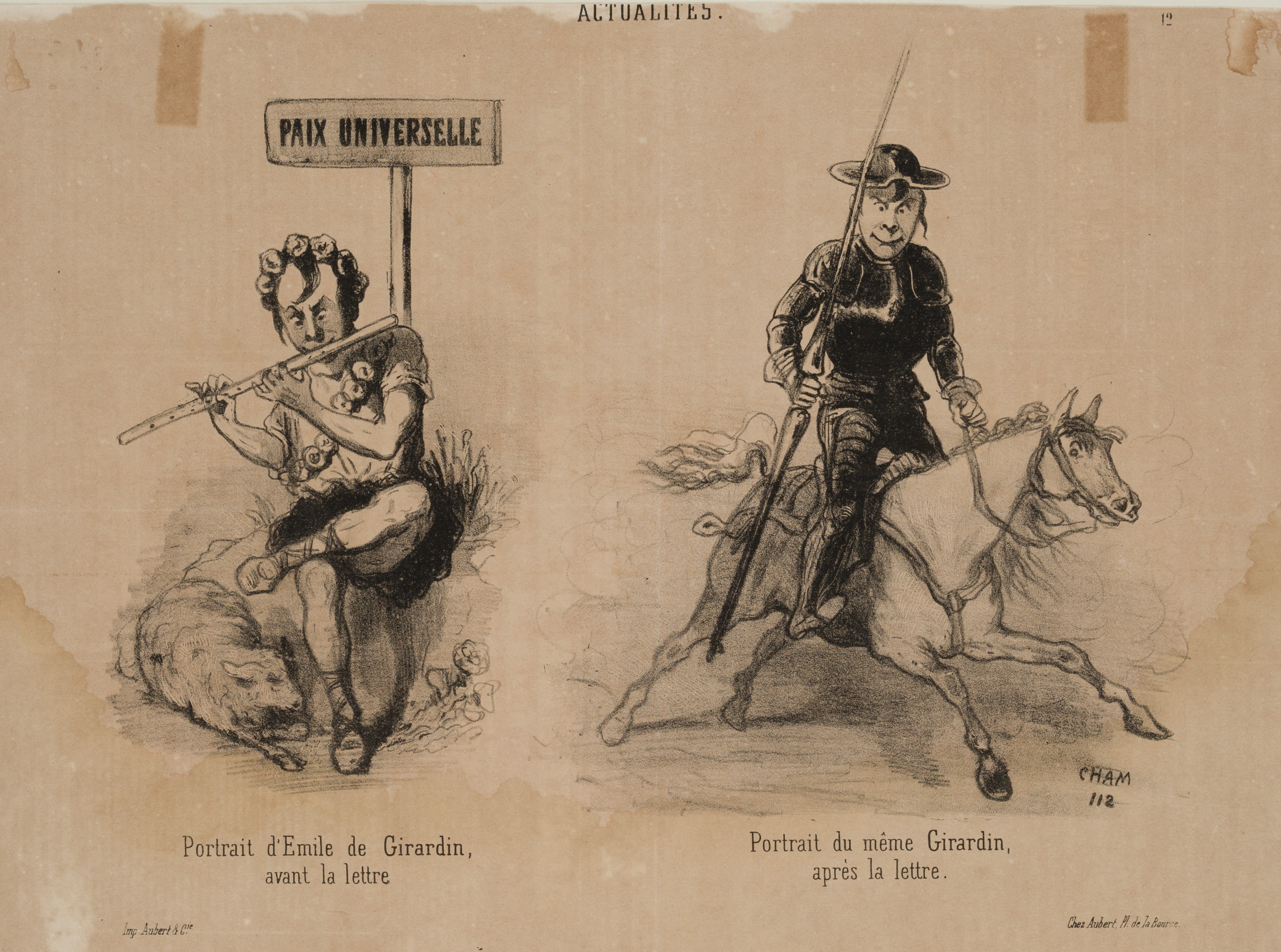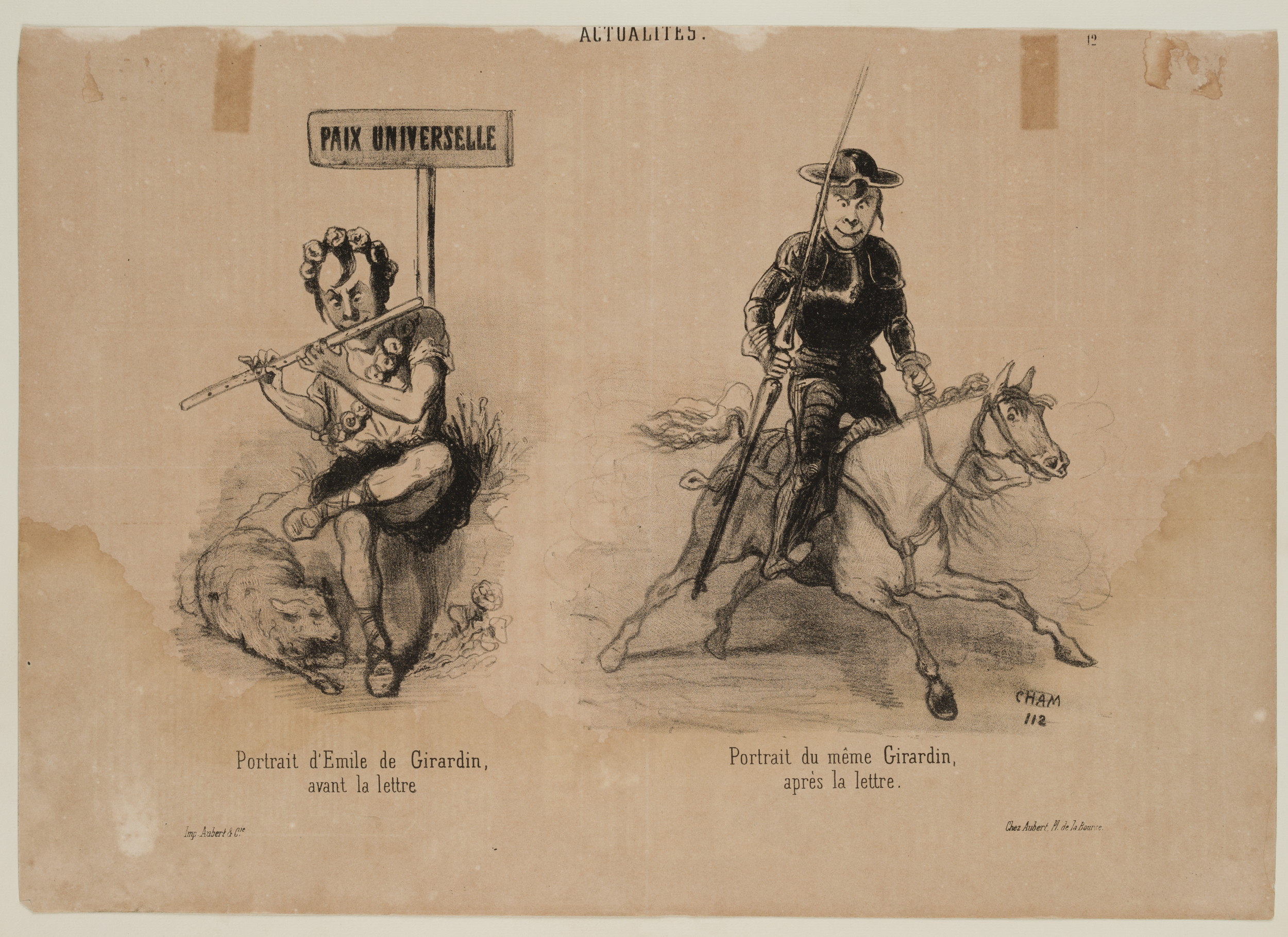 Cham: Amédée Charles Henry de Noé (1819 Paris – 1879 ibid.), Two caricatures by the journalist Emile de Girardin, , Lithography