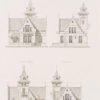 Georges-Simon Le Chatelier (born 1857 Paris) after Johannes Ludovicus Springer (1850 Groningen – 1915 The Hague), Architectural illustration Country House of Mr C C van der Lee in Doorn in Four Views, 1880, Lithography with pen