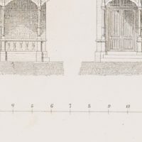 - Beschreibung: Blatt aus der ‘Allgemeinen Bauzeitung, 1880’, oben mit dem Namen des Landhauses und dessen Architekten beschriftet.