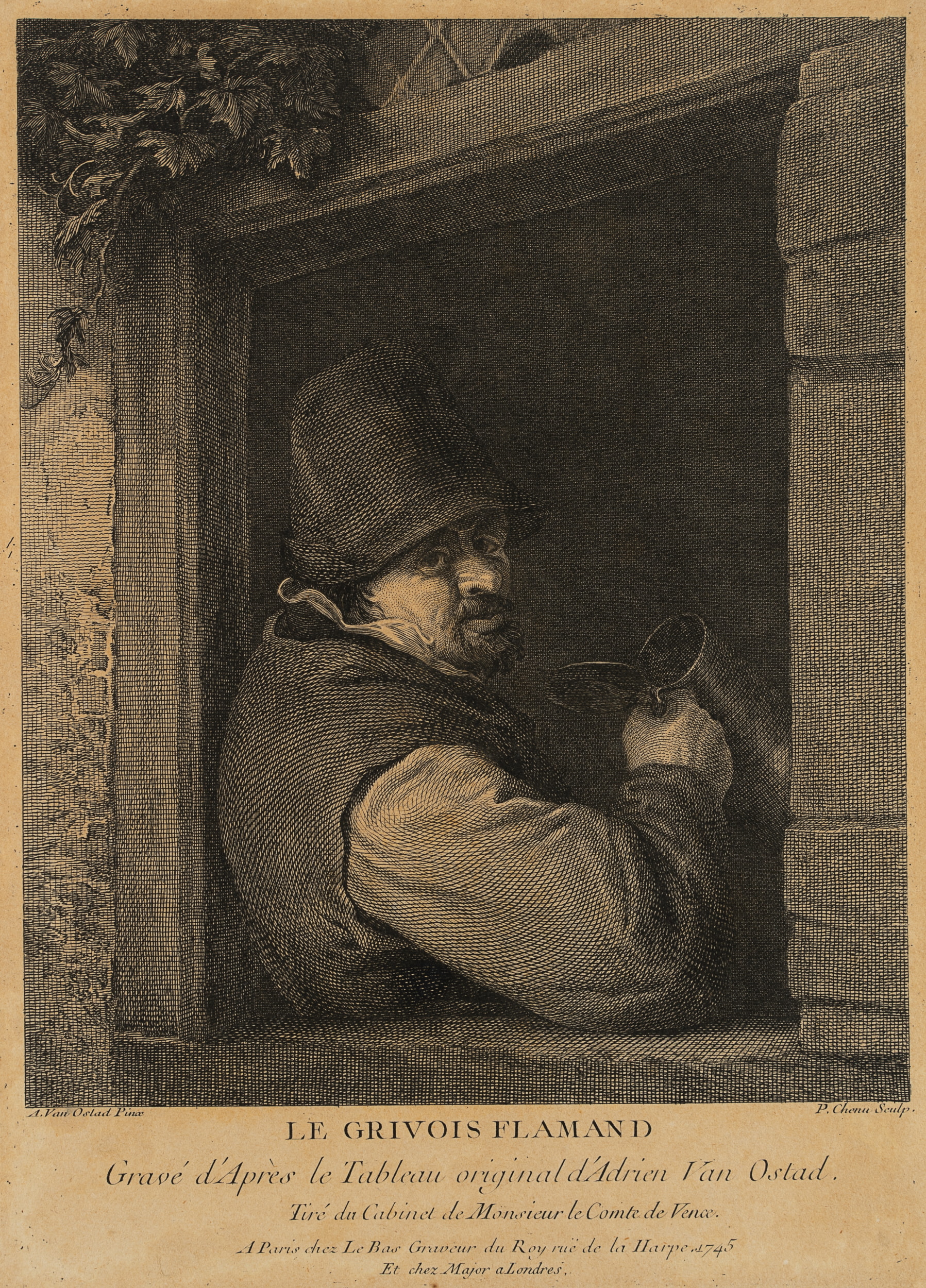 Pierre Chenu (1718 Paris – um 1800 ) nach Adriaen van Ostade (1610 Haarlem – 1685 ebd.), Der Flämische Trinker, 1745, Radierung