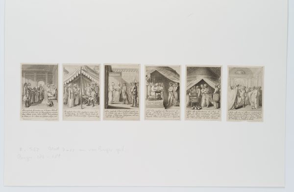 - Bezeichnung: Unterhalb beschriftet und oben rechts fortlaufend nummeriert von: 7 – 12. Blatt 1 ist unterhalb signiert und datiert