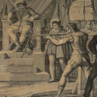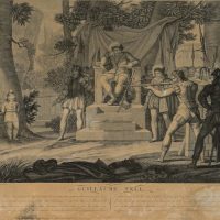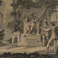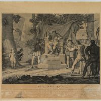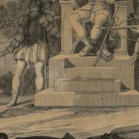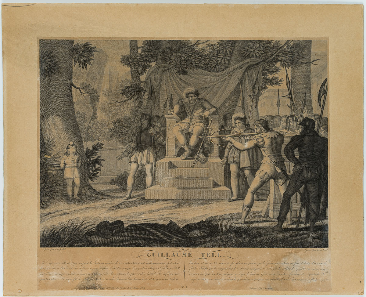 Choubard (19th century) after Charles Abraham Chasselat (1782 Paris – 1843 ibid.), William Tell shoots the apple off his son’s head, 19th century, Copper engraving