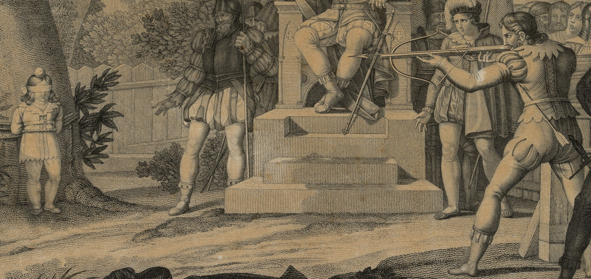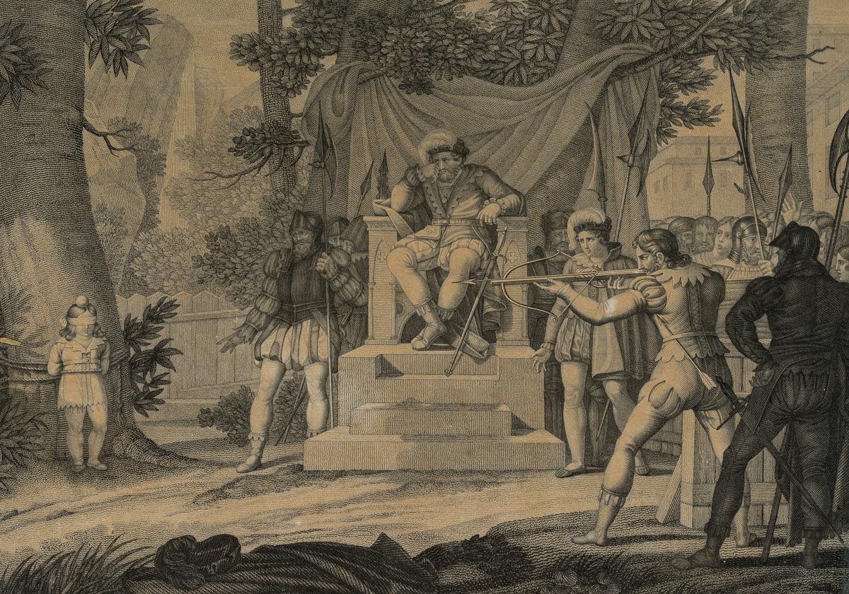 - Description: Depiction from the life of the Swiss freedom fighter William Tell. In one of the many Tell legends, the Habsburg bailiff Gessler of Altdorf has a hat stuck on a pole and orders the local subjects to salute it every time they pass him. Wilhelm Tell, a widely known crossbowman, refuses the salute, and the bailiff then orders him to shoot an apple off his son Walter’s head. Otherwise his child must die with him. Tell reluctantly does as he is told and hits the apple.