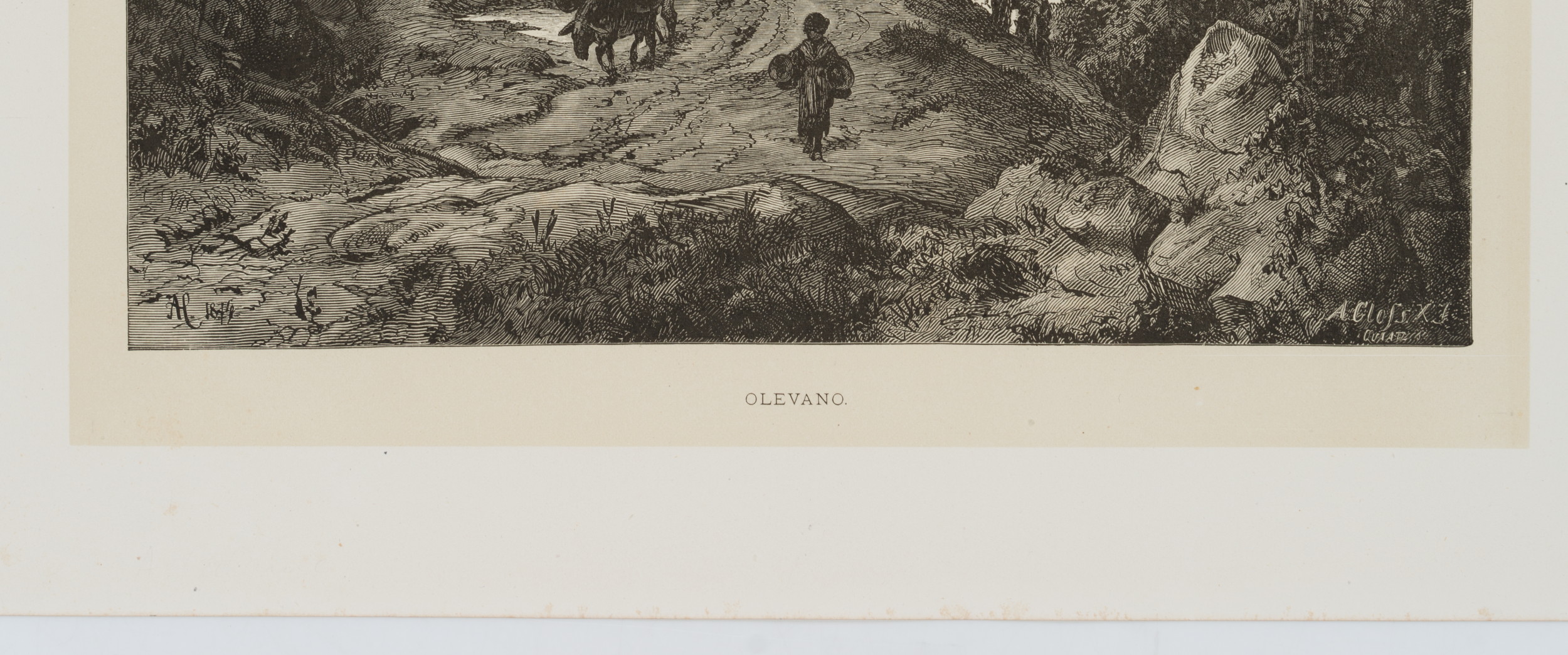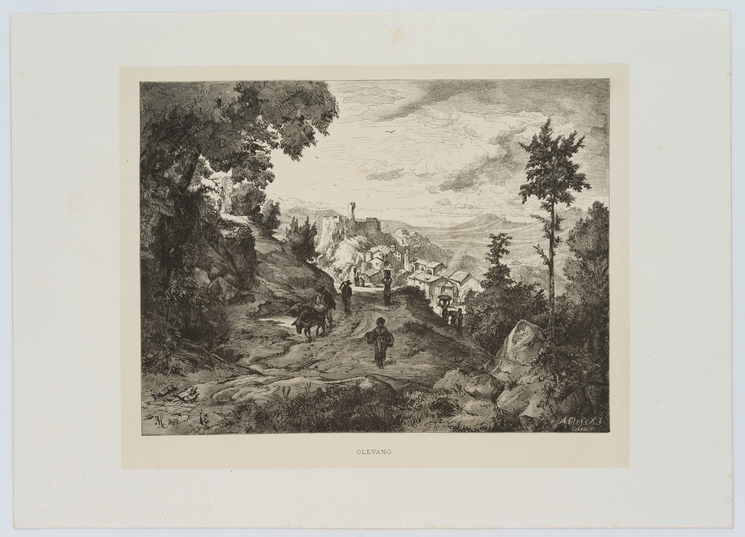 - Inscription: Lower middle signed in the printing plate: “AH. 1876 | A Closs X J”. Lower middle inscribed in the printing plate: “Olevano”.