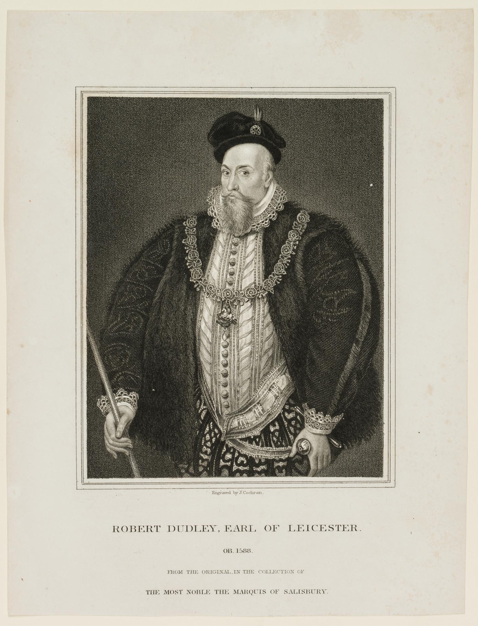 John Cochran (around 1821 – around 1865 ) after Unknown (16th century), Portrait of Robert Dudley, 1 Earl of Leicester (1533-1588 Oxfordshire), 1830, Stipple engraving