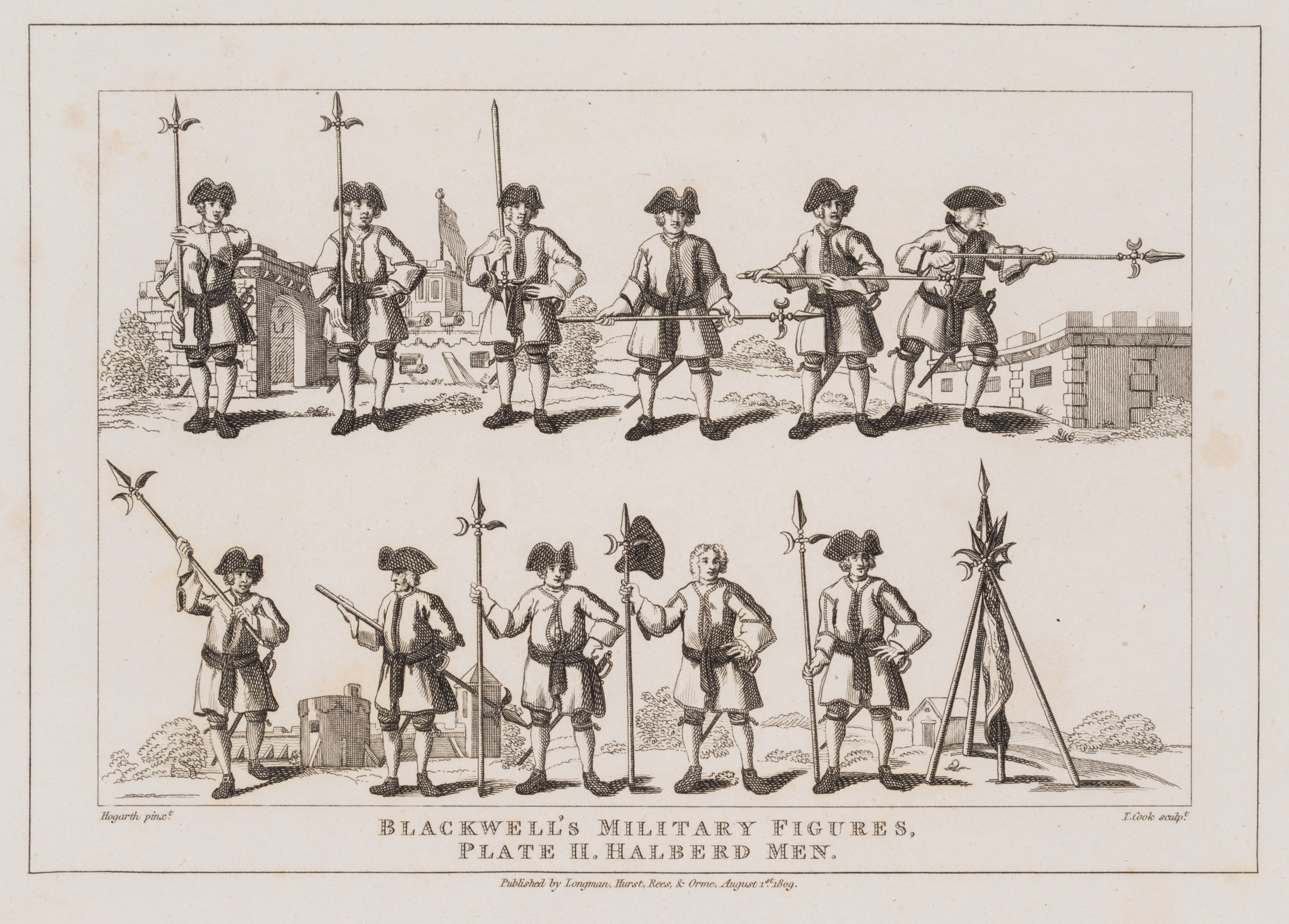 Thomas Cook (around 1744 – 1818 ibid.) after William Hogarth (1697 London – 1764 ibid.), Blackwell’s Military Figures, Halberd Men, Illustration of Military Exercises of the Infantry, Halberd Men, 1809, Etching