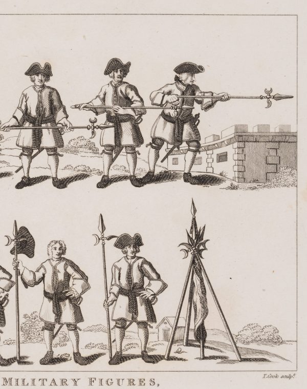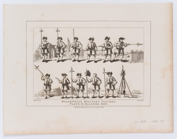 - Inscription: At the lower part signed in the printing plate: “Hogarth pinxt. | T. Cook sculpt.”. At the lower part inscribed in the printing plate: “Blackwell’s Military Figures. Plate II. Halberd Men.”.