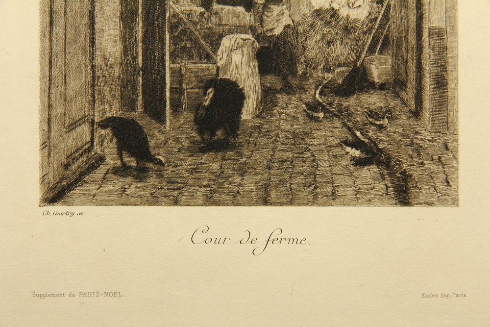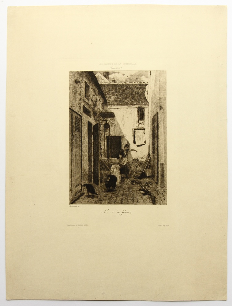 - Inscription: Signed by the artist below the image in the printing plate and titled “Cour de ferme”.