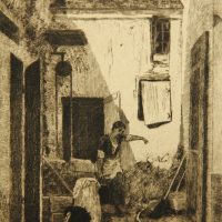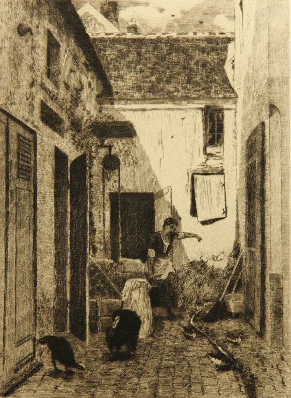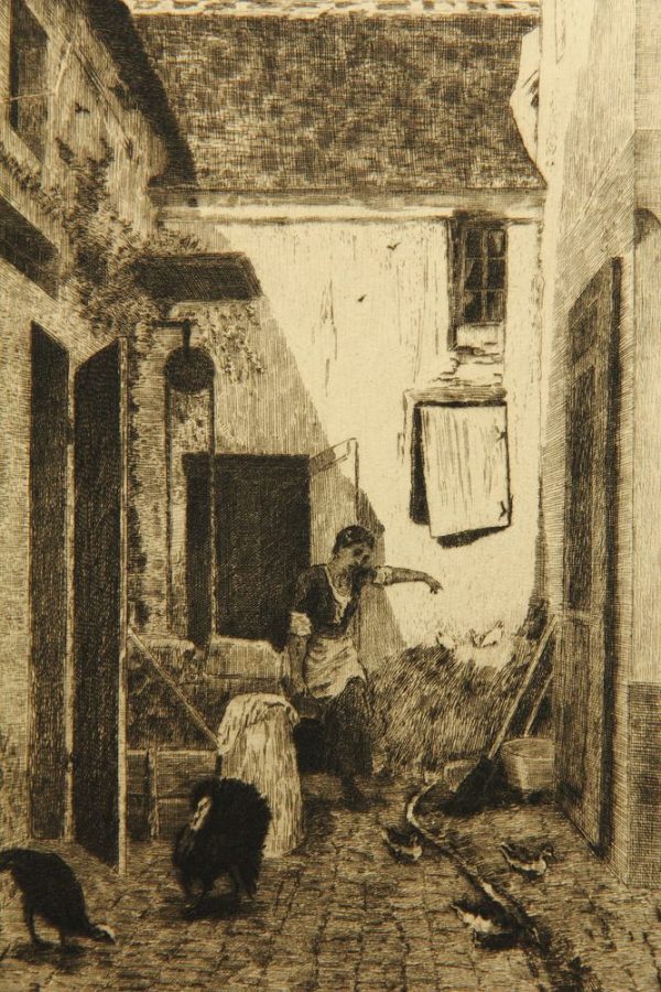 Charles Courtry (1846 Paris – 1897 ebd.) nach Alexandre Gabriel Decamps (1803 Paris – 1860 Fontainebleau), Hof eines Bauernhauses, 19. Jahrhundert, Radierung