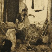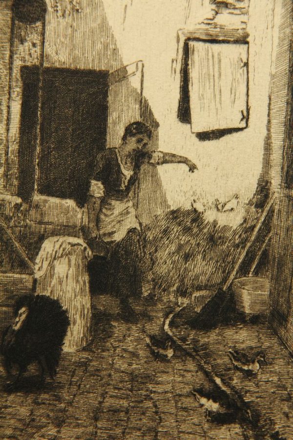 - Beschreibung: Hof eines Bauernhauses mit Magd und Federvieh. Nach einer Vorlage von Alexandre-Gabriel Decamps (1803 Paris – 1860) aus dem Jahre 1849.