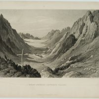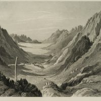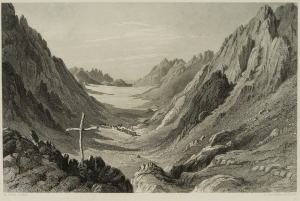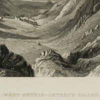 - Description: Inscribed lower left “H. Fenn Pinxt.”, inscribed lower right “C. Cousen Sculpt.”, named “Wâdy Sho’eib-Jehtro’s Valley”. View of the Jethro Valley, Arabic “Wadi Shueib”, in Jordan. The valley was named after the Old Testament figure Jethro, Moses’ father-in-law. The valley is impressively inscribed in the striking rocks, a small village can be seen in the middle ground in the otherwise deserted valley.