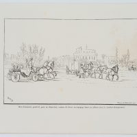 Crafty: (around 1840 – 1906 ibid.), Karkikatur des Kutschverkehrs in Paris, aus: “Paris à Cheval et la Province à Cheval, 1886, Etching