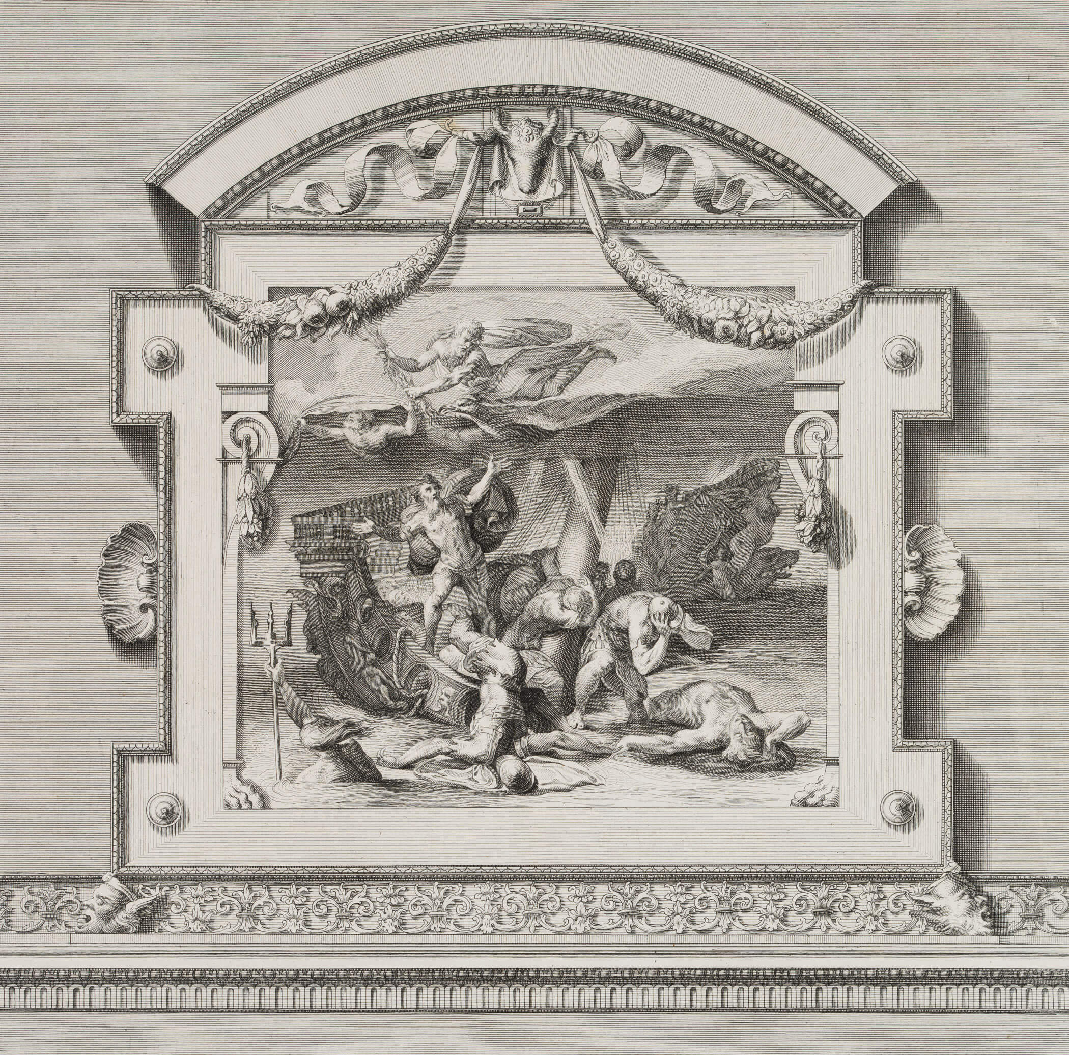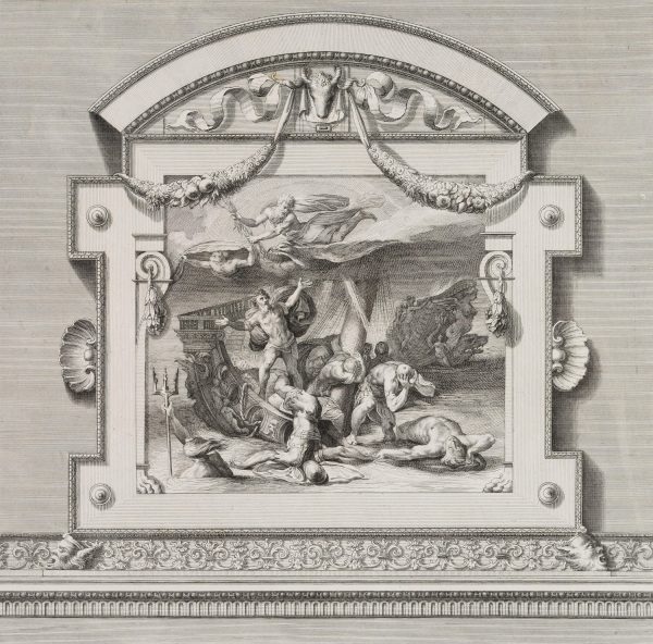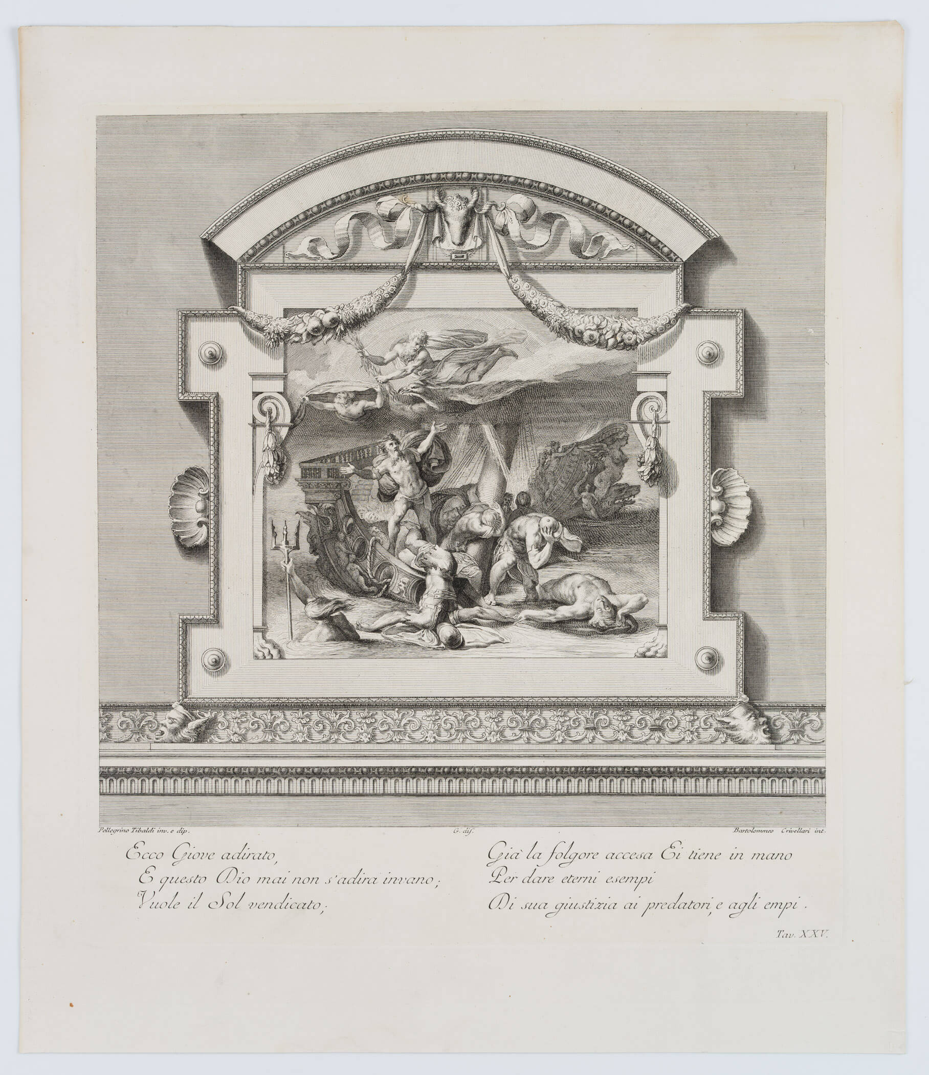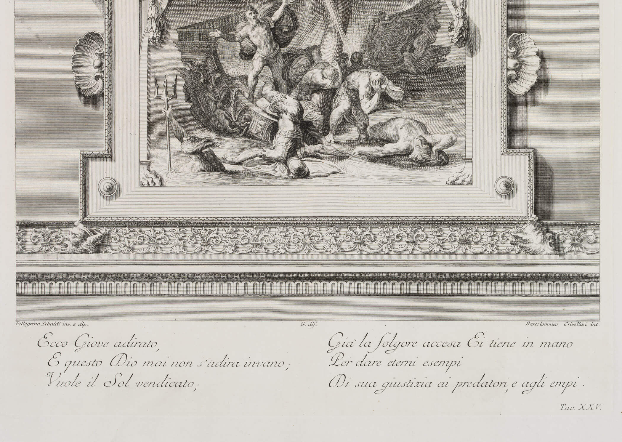 Bartolomeo Crivellari (1716 – 1777 ) after Pellegrino Tibaldi (16th century), Shipwreck of Ulysses, 18th century, Copper engraving