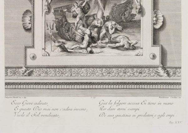 - Bezeichnung: Unten mittig im Druck bezeichnet: “Pellegrino Tibaldi inv. e dip. | Bartolommeo Crivellari int.”. Unten rechts nummeriert: “”.