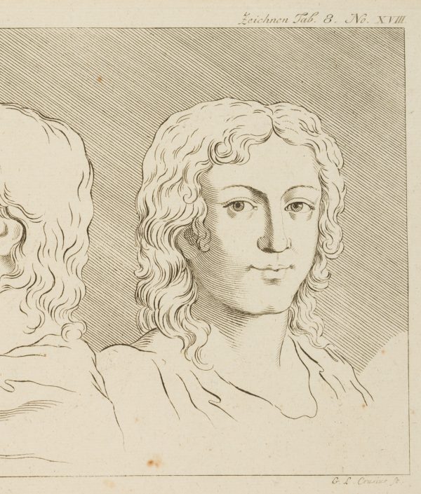 Gottlieb Leberecht Crusius (1730 Steinpleis near Werdau – 1804 Leipzig) after Charles le Brun (1619 Paris – 1690 ibid.), Drawing exercises, portrait and head studies, c. 1762, Copper engraving