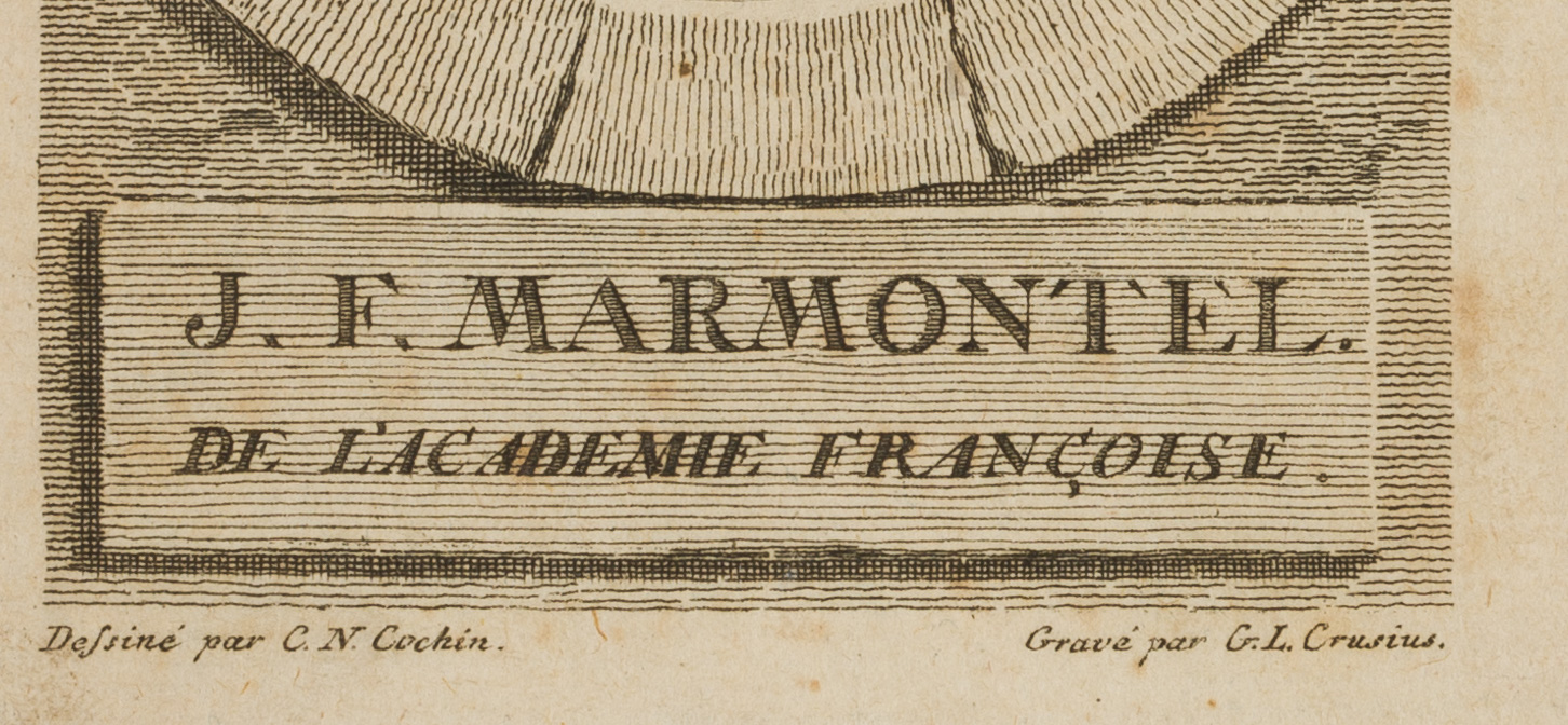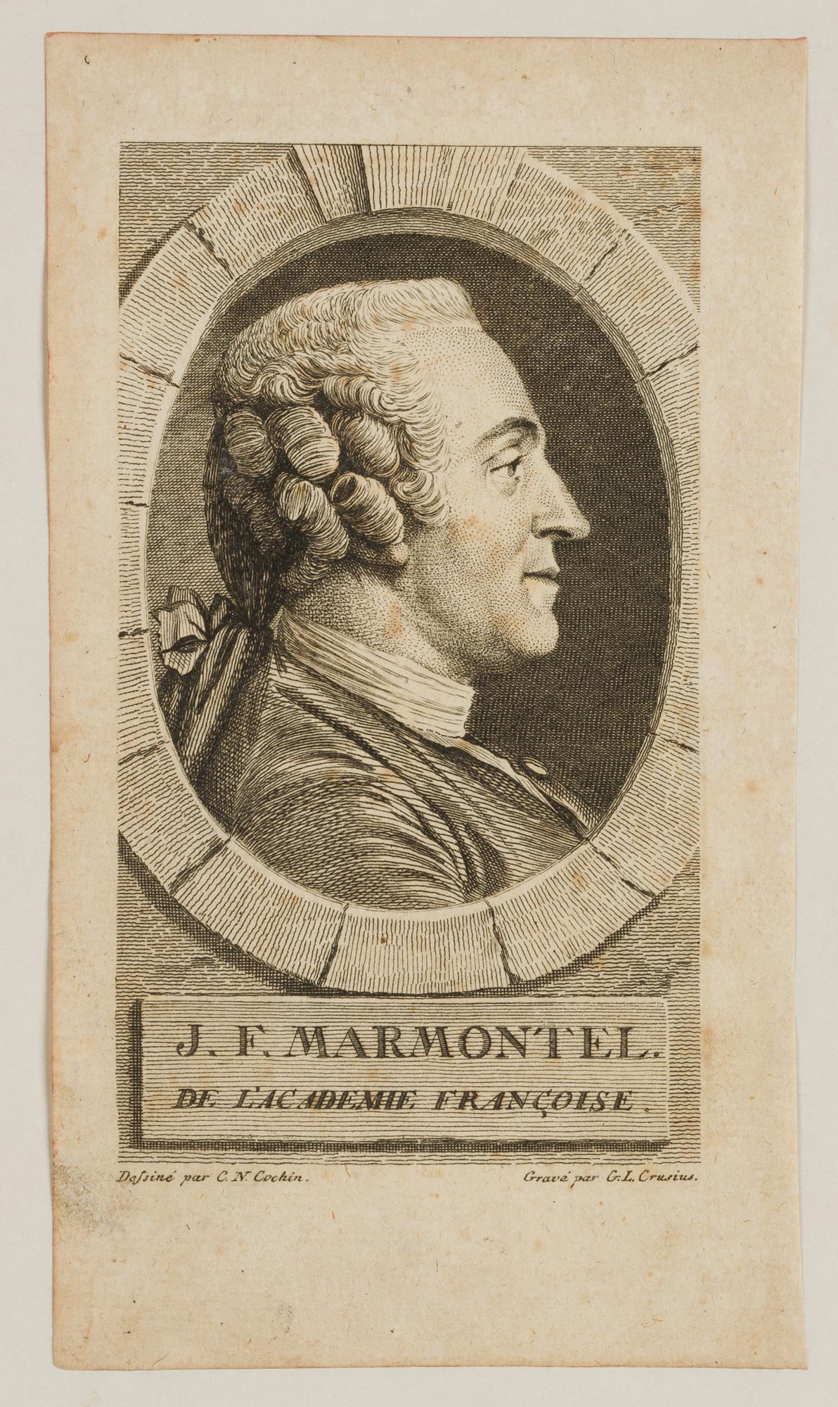 Gottlieb Leberecht Crusius (1730 Steinpleis bei Werdau – 1804 Leipzig) nach Charles-Nicolas Cochin d. J. (1715 Paris – 1790 ebd.), Bildnis des Jean-Francois Marmontel (1723 Bort-les-Orgues – 1799 Weiler Habloville), Dramat. Dichter, Musikschriftsteller und Enzyklopädist, 19. Jahrhundert, Kupferstich