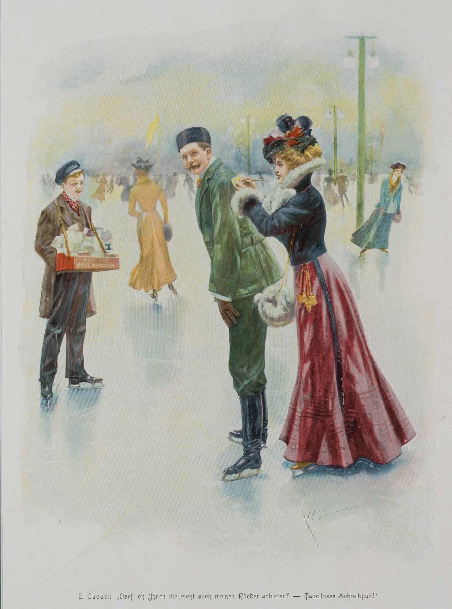 - Schlagworte: werben, den Hof machen, Alte Schule, Eislaufen, Paar, Illustrierte Monatsschrift, Mode, Deutschland, Biedermeier, 1900-1924