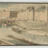- Keywords: Veduta, River, Paris, Architecture, Raft, Ship, Bridge, 19th century, Romanticism, Architecture, France,