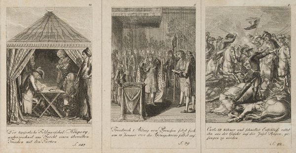 - Keywords: “Historisch Genealogischer Calender auf das Jahr 1793. mit Genehmhaltung der Königl. Academie der Wissenschaften zu Berlin”, History, Prussia, Military, Officers, Costume, Fashion, Persons, Scenes, Field Marshal von Schoening, Emperor Leopold, Margrave Carl Philipp von brandenburg, Countess von Sallmour, Peter the Great, Frederick I of Prussia, King, Coronation, Queen Sophie Charlotte, Death, Charles XII, Frederick II, Princess Elisabeth Christine of Brunswick, Marriage, Frederick William I., 18th century, Classicism, Fashion, Germany,