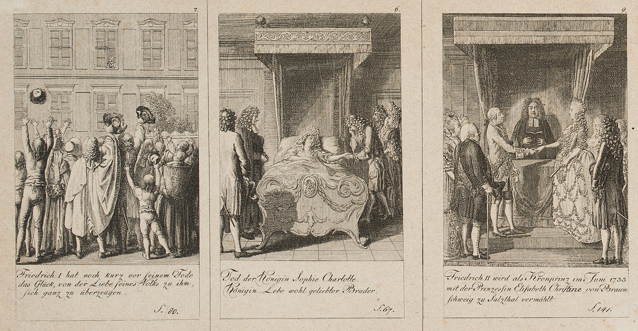 - Schlagworte: “Historisch Genealogischer Calender auf das Jahr 1793. Mit Genehmhaltung der Königl. Academie der Wissenschaften zu Berlin”, Geschichte, Preußen, Militär, Offiziere, Kostüm, Mode, Personen, Szenen, Feldmarschall von Schoening, Kaiser Leopold, Markgraf Carl Philipp von brandenburg, Gräfin von Sallmour, Peter der Große, Friedrich I. von Preußen, König, Krönung, Königin Sophie Charlotte, Tod, Karl XII, Friedrich II., Prinzessin Elisabeth Christine von Braunschweig, Heirat, Friedrich Wilhelm I., Mode, Genre, Deutschland, Klassizismus, 1750-1799