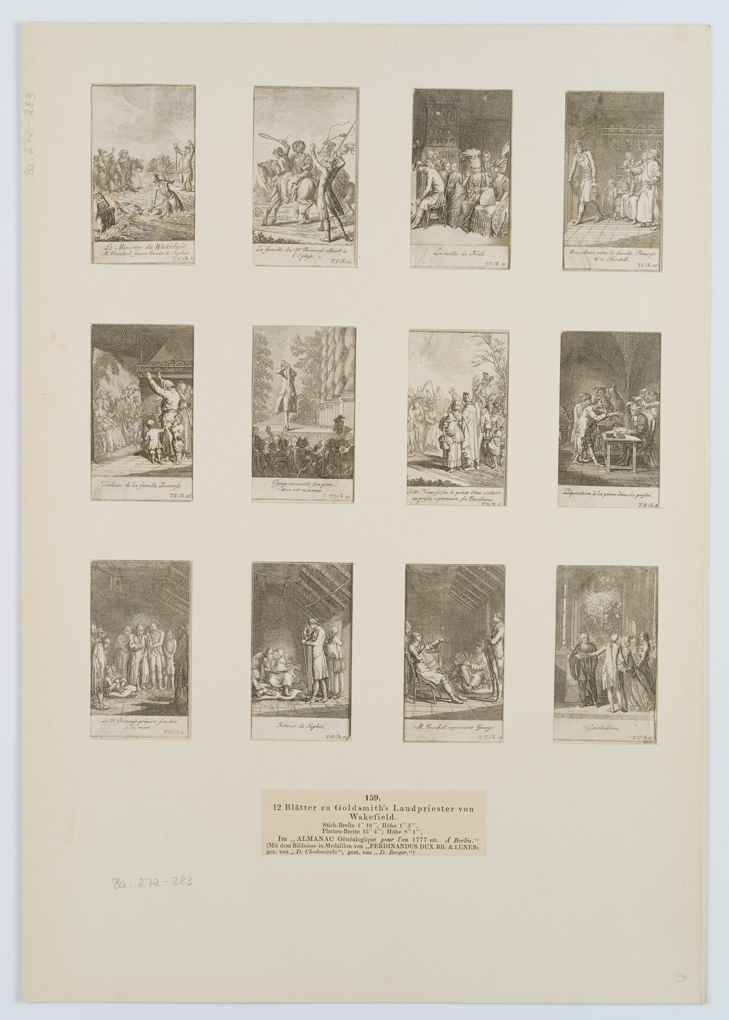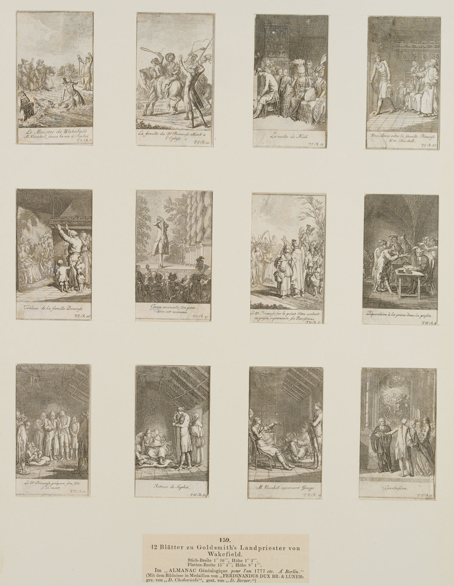 Daniel Nikolaus Chodowiecki (1726 Danzig – 1801 Berlin), CHODOWIECKI, 12 Blätter. Goldsmith’s Landpriester von Wakefield, 1777, Rad, 1777, Radierung