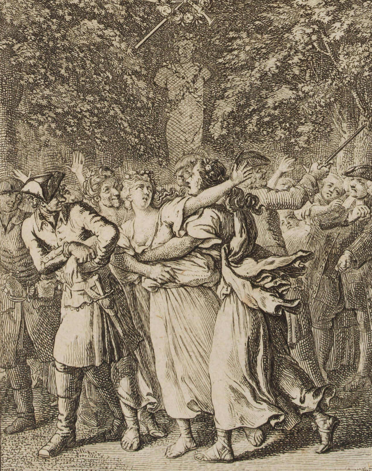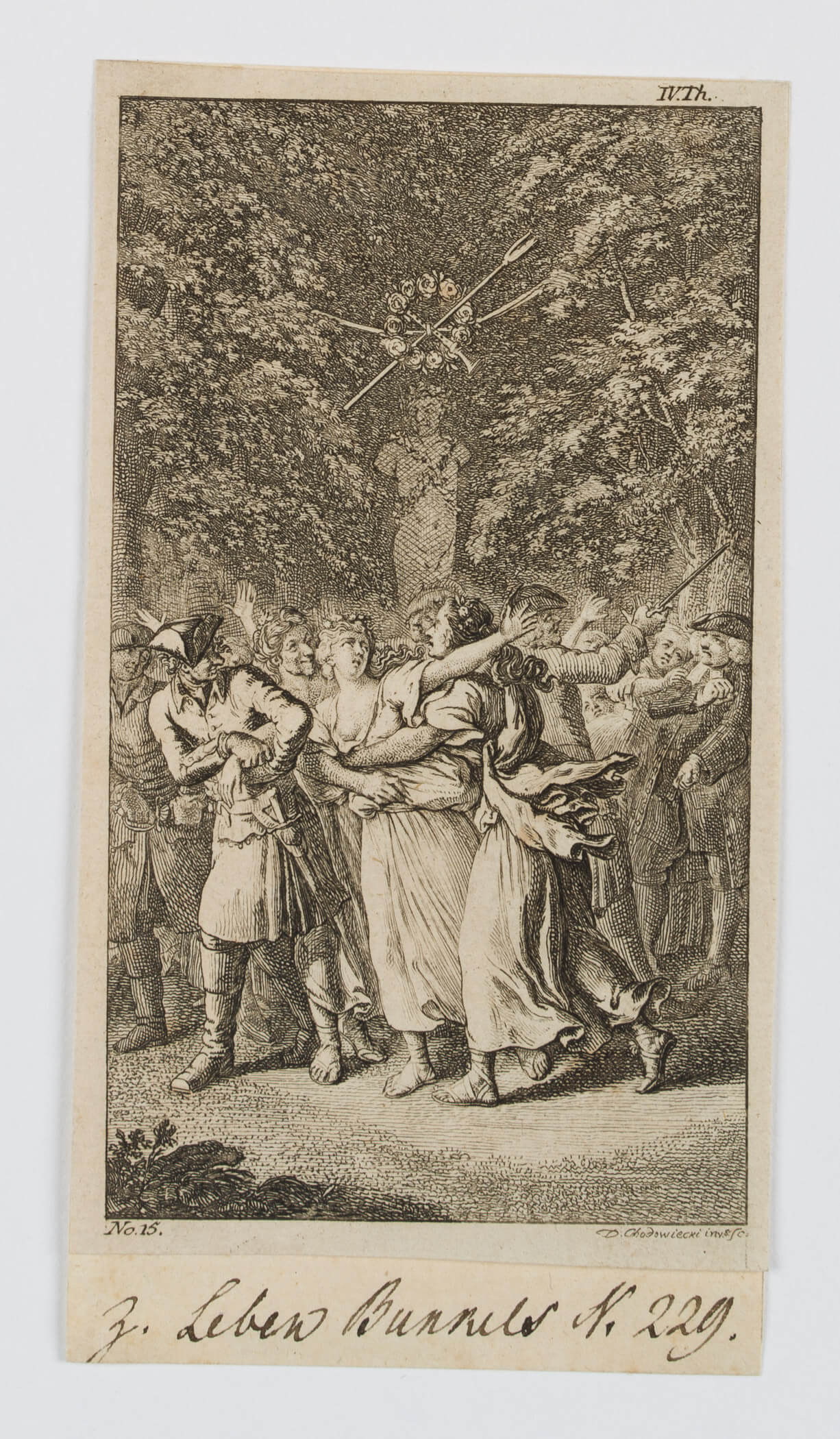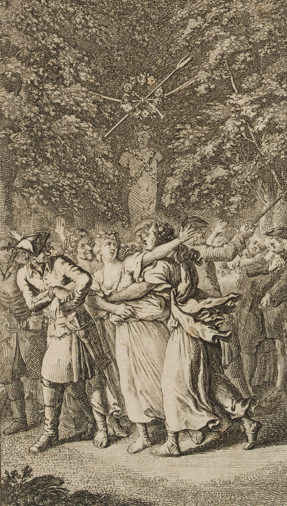 - Keywords: Book illustration, Literary illustration, abduction, Johann Bunkel, Miss West, herm, tree, wreath, 18th century, Baroque, Costumes, Germany,
