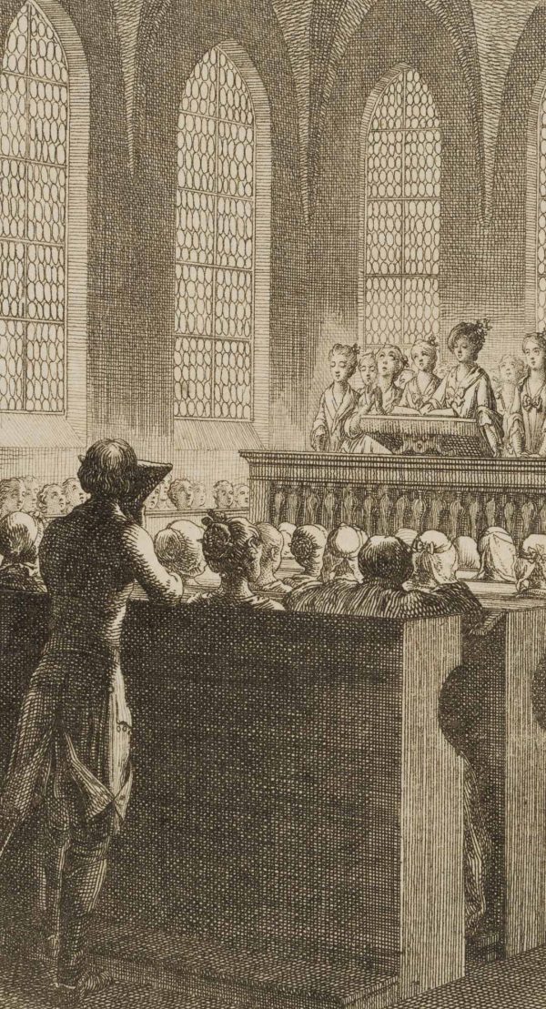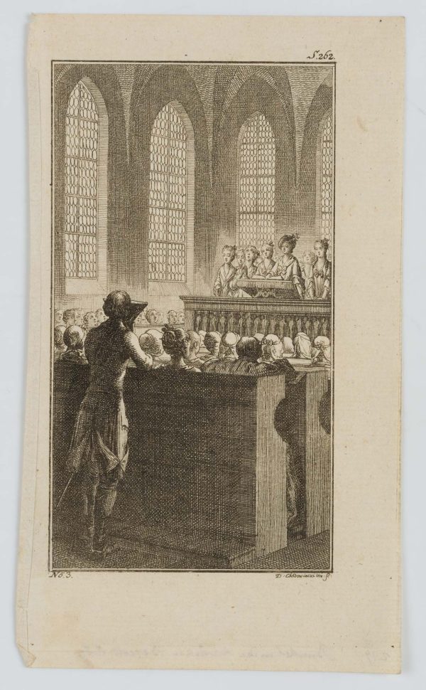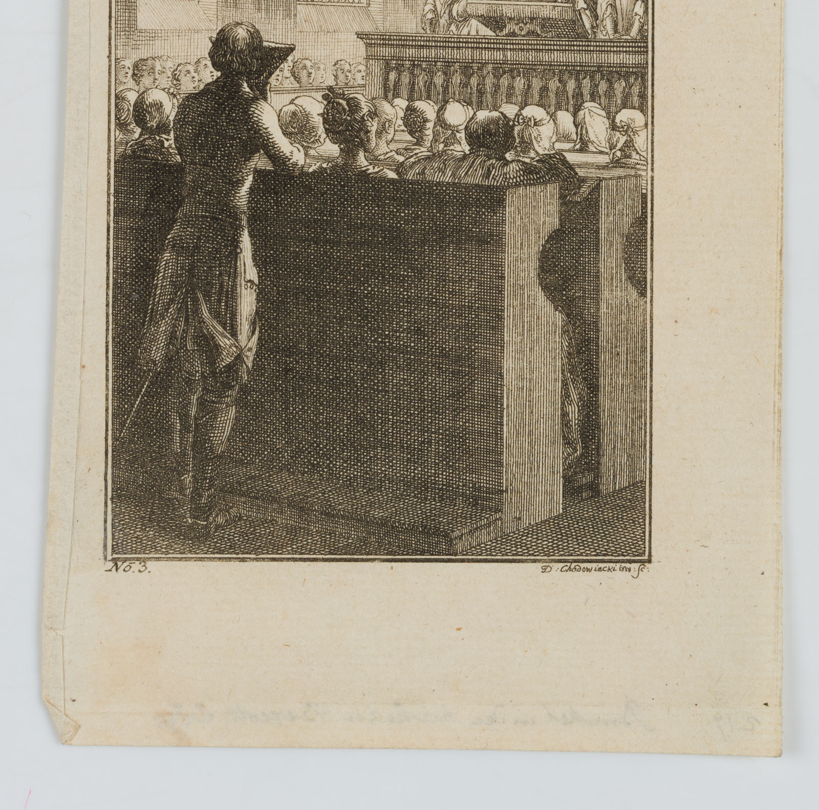 Daniel Nikolaus Chodowiecki (1726 Danzig – 1801 Berlin), CHODOWIECKI, Lit Illust ‘Johann Bunkels Leben’. Bunkel i. d. Kirche , 1778, Kup, 1778, Kupferstich