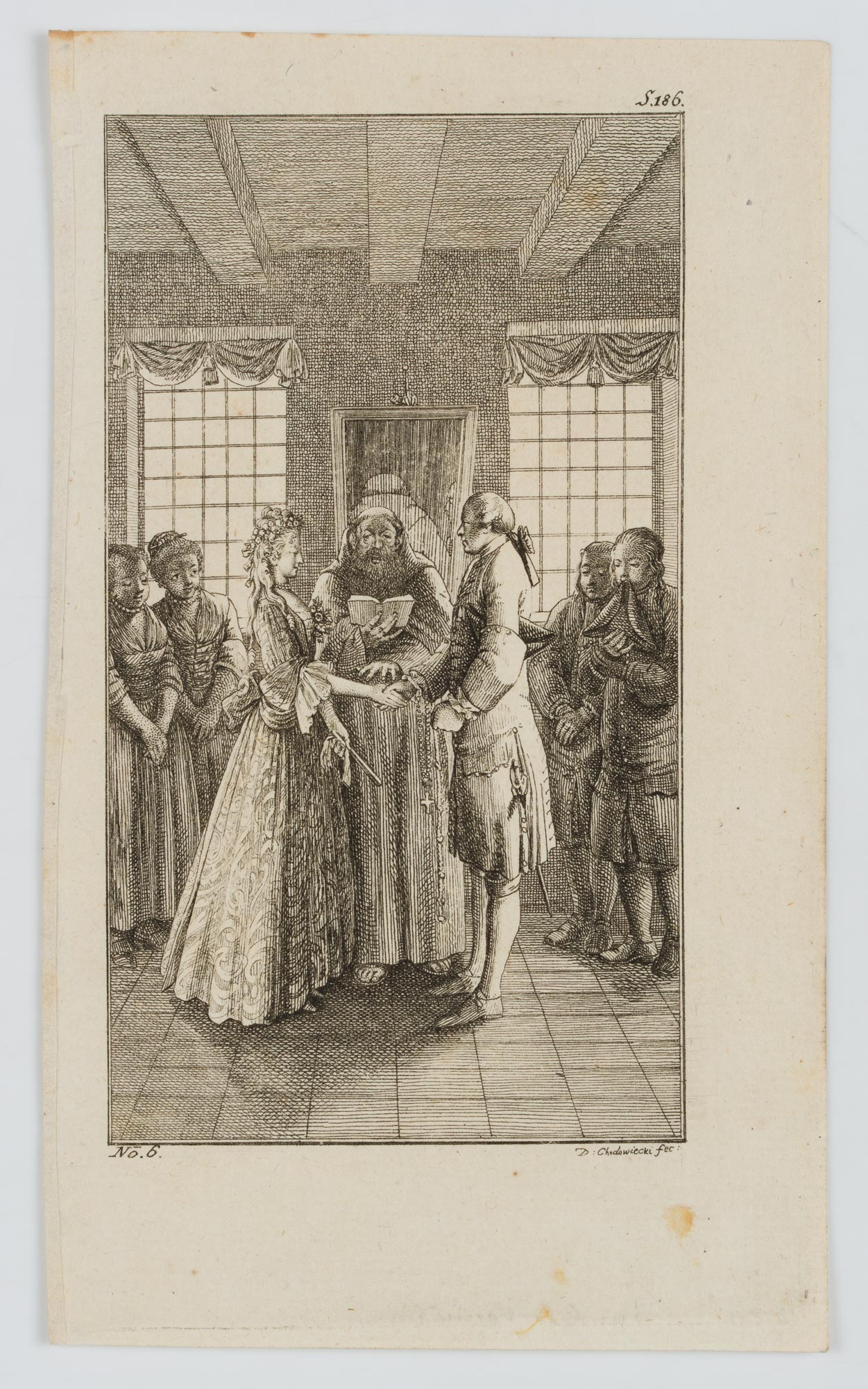 Daniel Nikolaus Chodowiecki (1726 Gdansk – 1801 Berlin), CHODOWIECKI, Lit Illust ‘Johann Bunkel’s Life’ Marriage, 1778, 1778, Copper engraving