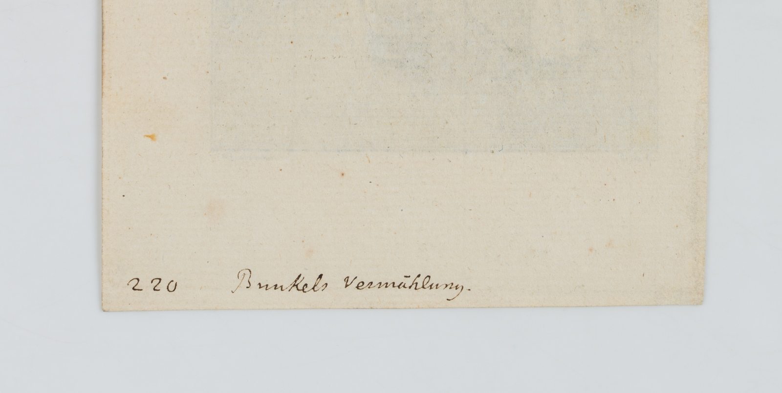 - Bezeichnung: Unterhalb der Darstellung nummeriert mit “No.6” und signiert. Rückseitig handschriftlich beschriftet mit “220 Bunkels Vermählung”.