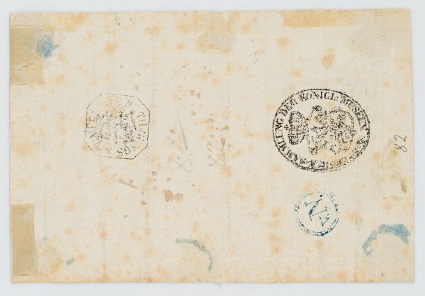 - Bezeichnung: mittig in der Druckplatte bezeichnet: “A la Charité”, verso Sammlungsstempel Kupferstichkabinett der Staatlichen Museen (Lugt Nr. 1606), Tilgungsstempel des Kupferstichkabinetts (Lugt Nr. 2398) und Karl Ferdinand Friedrich von Nagler (Lugt Nr. 2529)