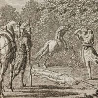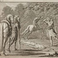 Daniel Nikolaus Chodowiecki (1726 Gdansk – 1801 Berlin), Idris and Zenide With Idris in armour, driving away the malignant centaur, leaf to Wieland’s Idris, 1789, Etching