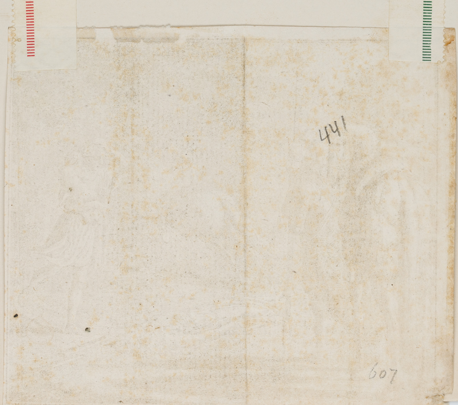 - Condition: Very good condition. A little bit foxed at margins, lower left corner torn off. Inscription partly cut off. Vertical crease mark is visible.