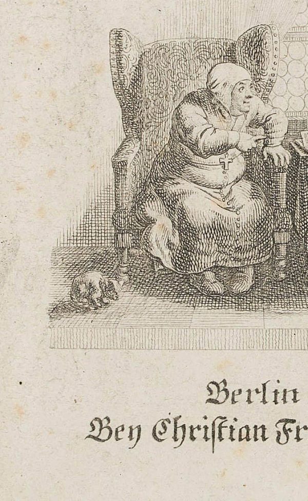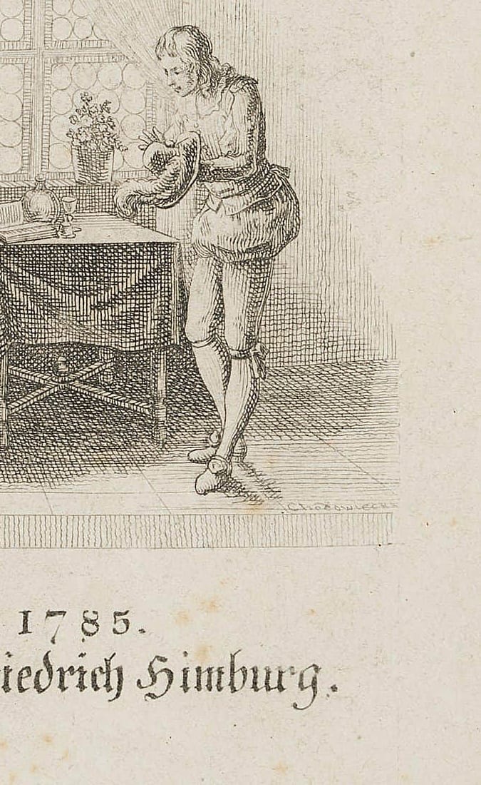 - Inscription: Lower right signed in the printing plate: “Chodowiecki”, recto und verso von fremder Hand in Bleistift bezeichnet”.