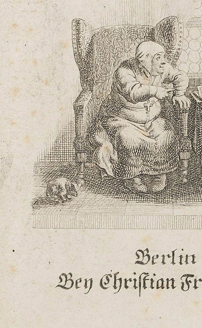 - Beschreibung: Beim Erzbischof von Granada. Dritter Zustand mit den eingestochenen Titeln zur 2. Auflage von 1785. “Gil Blas von Santillana (Von Le Sage.) Neu übersetzt (Von W. Christoph Sim. Mylius.) 6 Bände. Berlin 1779”, Titel-Vignette und Titel-Kupfer zum Vierten Band,