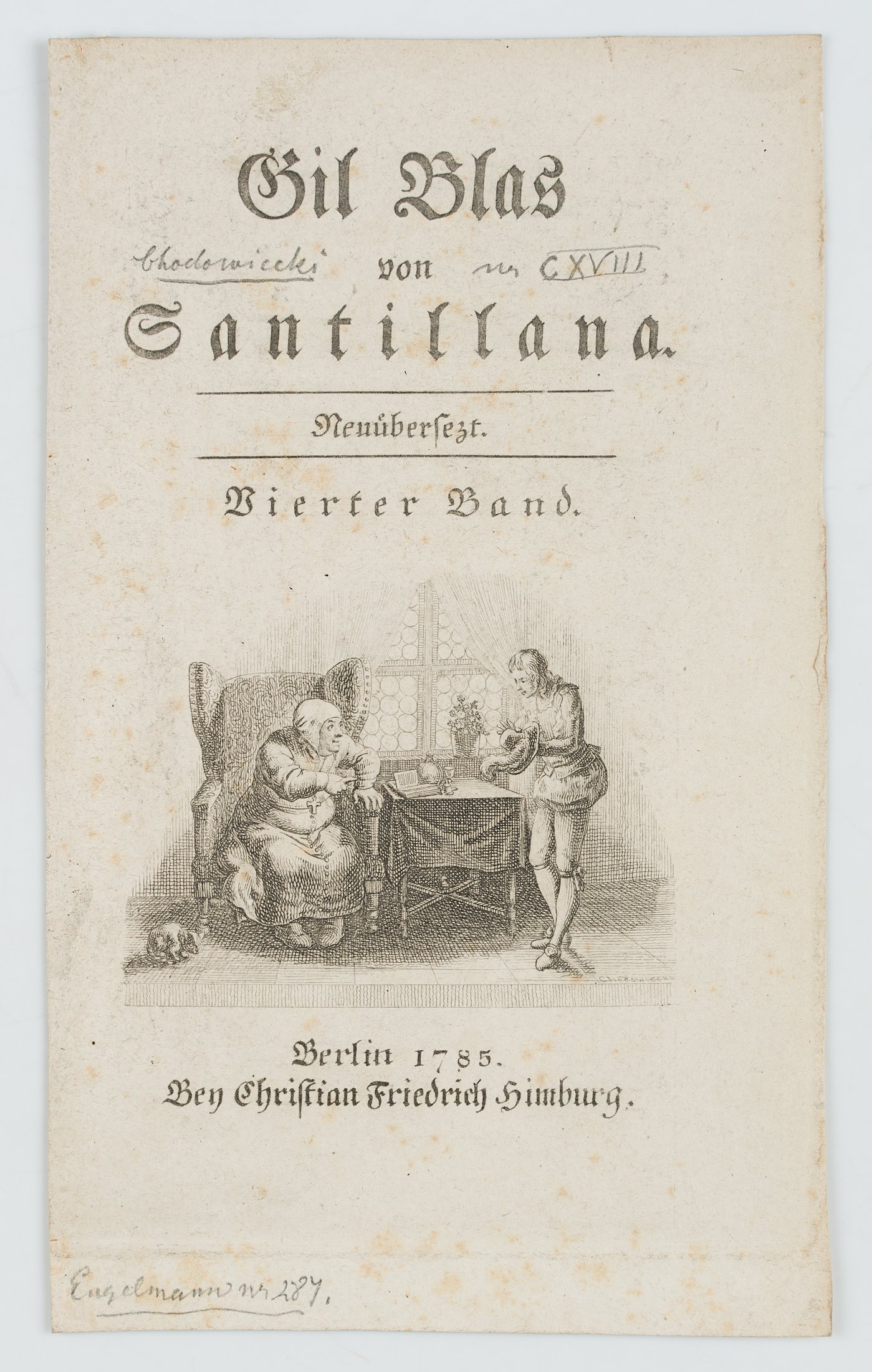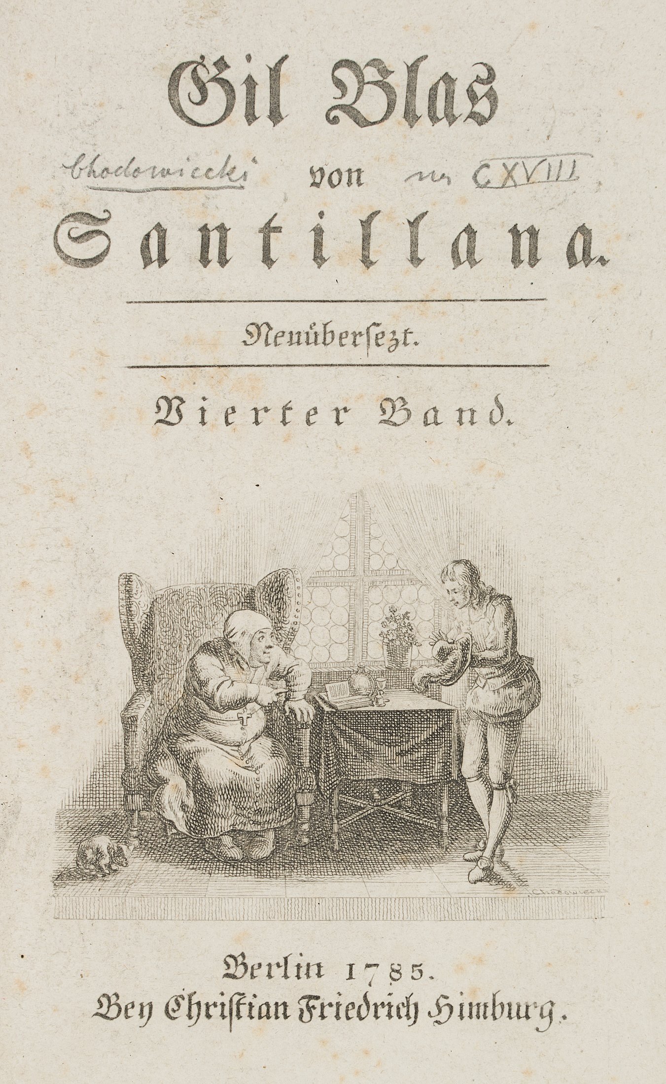 - Description: By the Archbishop of Granada. Third state with the engraved titles to the 2nd edition of 1785. “Gil Blas von Santillana (By Le Sage.) Newly translated (By W. Christoph Sim. Mylius.) 6 vols. Berlin 1779”, title vignette and title copperplate to the fourth volume,