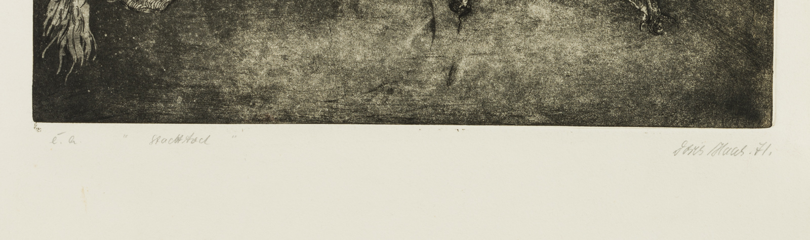 • Inscription: Inscribed on the left below the print with: “e. a. | “Stadttod”” and signed and dated on the right with “Doris Haas. 71”.
