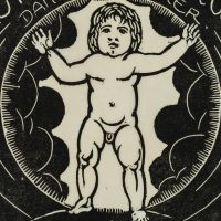- Description: Inscribed in the image “Daniel Greiner”, named “Menschwerdung/3”. Title page of the series of woodcuts entitled “Menschwerdung”. Below the lettering and the artist’s name is a naked child, with arms wide open, looking abruptly at the viewer. Following the title, it is a pictorial representation of the embodiment of God in Christ. Born in 1872 as the son of a preacher’s family with many children, Daniel GREINER attended the sculpture school in Berlin and Paris after studying philosophy. From 1903 to 1906 he was a member of the Darmstadt artists’ colony, after that he settled in Jugenheim with his own workshop. GREINER worked as a sculptor, medallist, graphic artist and writer. His best-known work is probably the “Greiner Bible”, which takes up themes from the Old and New Testaments in 147 woodcuts.