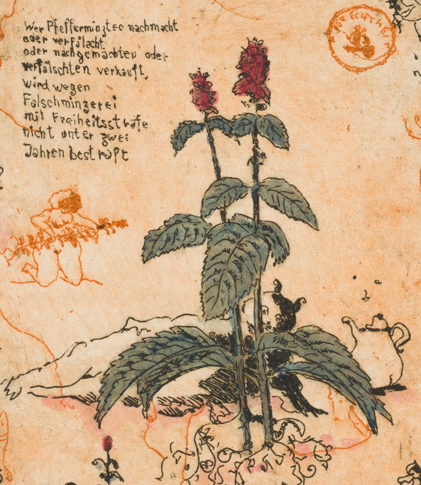 - Keywords: Humour, Joke, Caricature, Plant, Peppermint tea, 20th century, Modern, Botany, Germany,