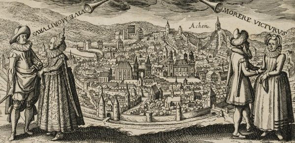 Daniel Meissner (1585 – 1635 ibid.), View of Aachen, Youth & Old Age, 1627, Copper engraving
