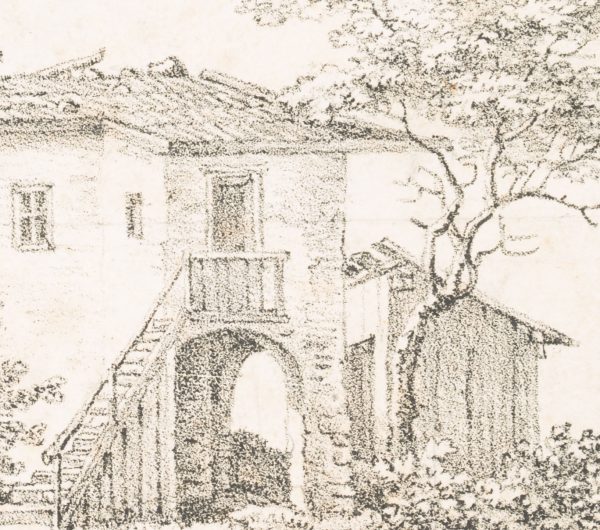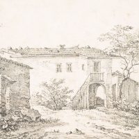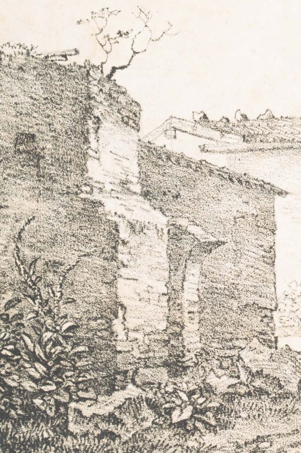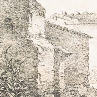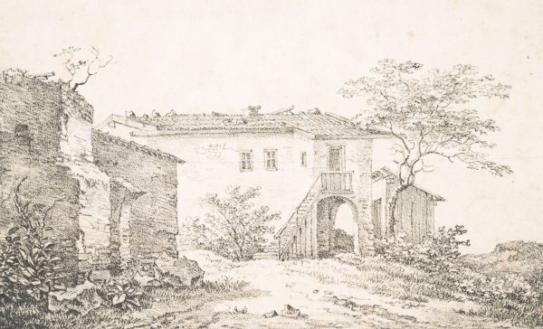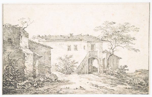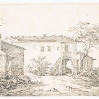 - Description: The lithograph shows a rustic stone house with a small shed and a ruin in the left foreground. Verso inscribed by another hand in lead “Quaglio 1818”.The Quaglio family were an Italian-German family of artists who produced a number of renowned painters and architects in the 17th to 20th centuries. The family originally came from Laino in northern Italy and later settled in Munich. Johann Dominicus Quaglio was one of the most important architectural painters of the German Romantic period, a theatre painter, lithographer and etcher.